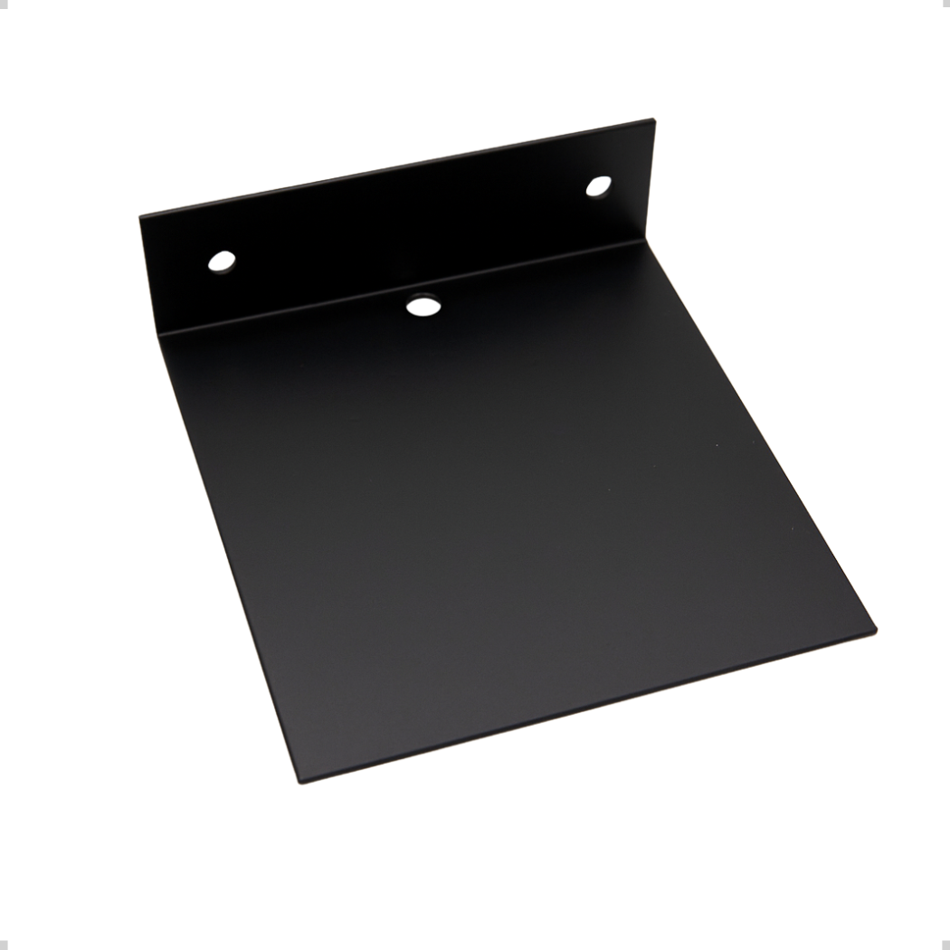 Possui furos de 6mm para fixação prática e segura na parede e furo central de 12mm, ideal para a passagem de fios ou cabos, otimizando a instalação de equipamentos eletrônicos como caixas de som.
